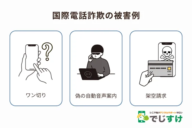 国際電話詐欺対策を講じる際には、まず典型的な事例を知っておくのが効果的です。ここでは、国際電話詐欺でよくある被害例をご紹介します。