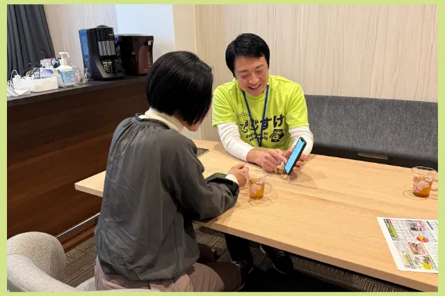 「でじすけ」では、社会福祉士・SPREAD情報セキュリティマイスターの資格をもつスタッフが、国際電話詐欺の対策などの支援をおこなっています。プライバシーに配慮し、個別スペースのある専用サロンをご用意しております。出張対応や集団向けの講座なども対応可能ですので、お気軽にご連絡ください。